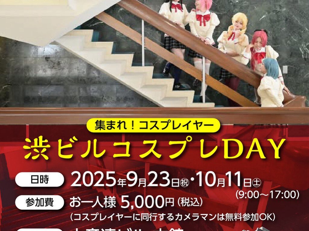 参加要件:コスプレイヤーに限ります※「渋ビルコスプレDAY」開催当日の2日間は、一般の方の施設内見学は不可。