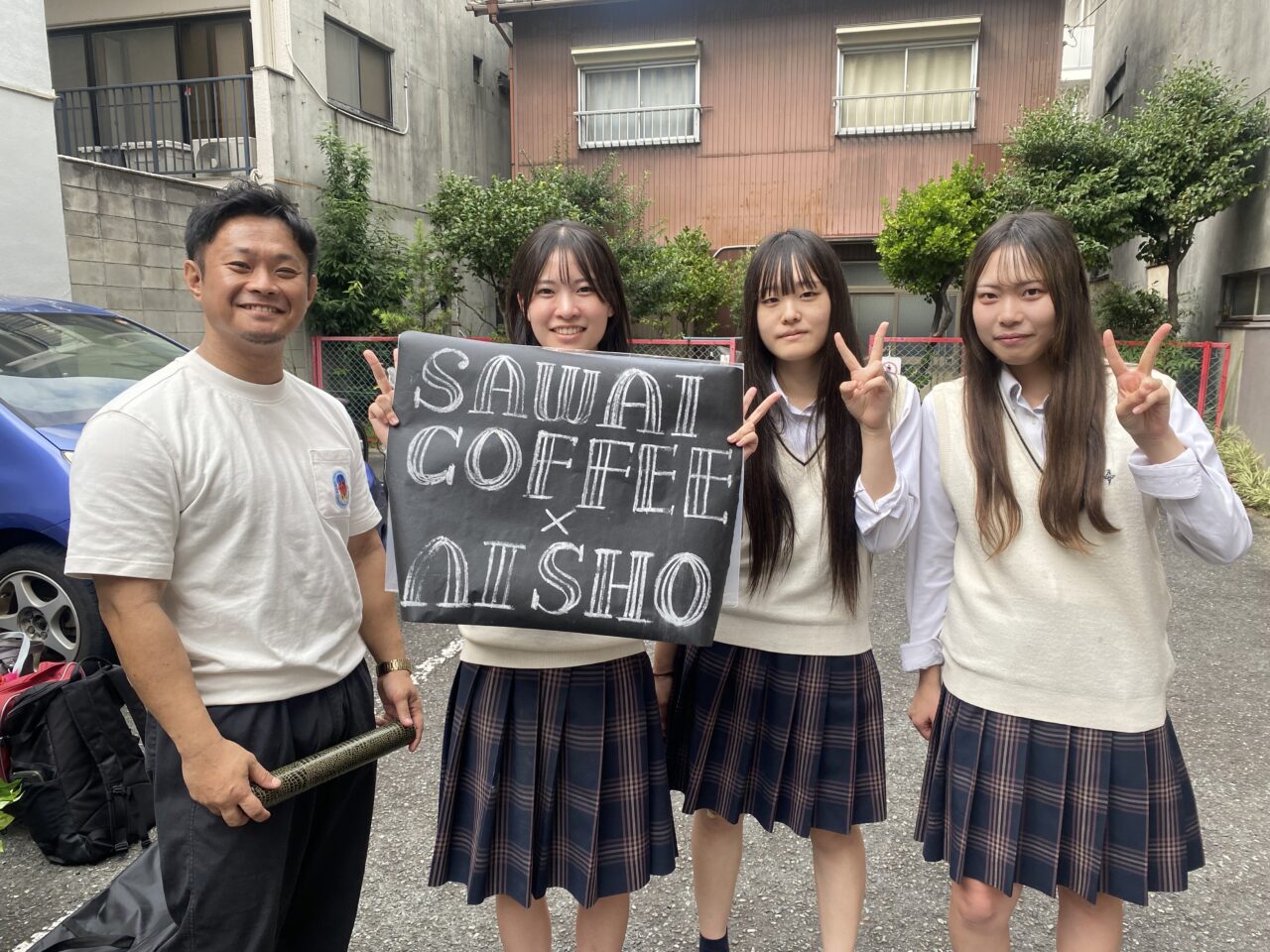 2025年10月10日(金)、東区泉2丁目にある「澤井コーヒー本店」駐車場で、「なごやかまつり・ひがし」コラボ出店に向けたハンドドリップの模擬演習が行われました。参加したのは、愛知商業高校の学生たち。