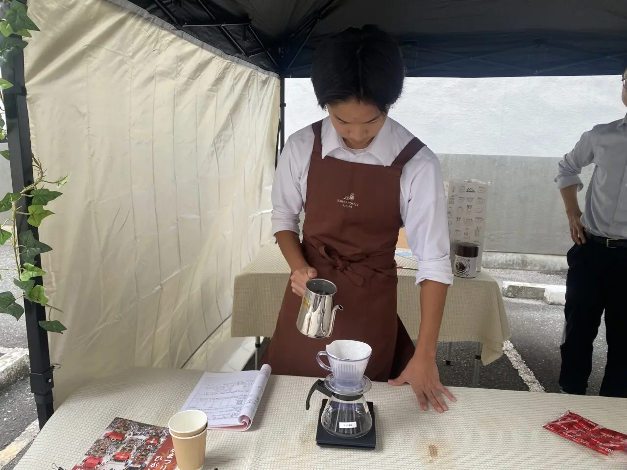 今年の高校3年生たちは、ハンドドリップの技術を全員習得!区民祭で実際に、お客様にハンドドリップのコーヒー提供にチャレンジします。