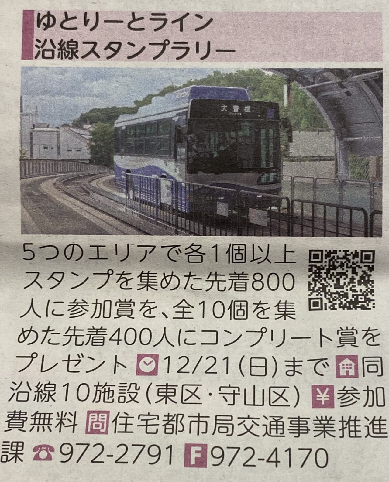 名古屋市東区・守山区を走る「ゆとりーとライン」(ガイドウェイバス)沿線で、沿線施設を巡るスタンプラリーが開催中です。日本でもここだけというガイドウェイバスに乗って、沿線エリアの魅力を楽しみながら巡ることができる内容です。