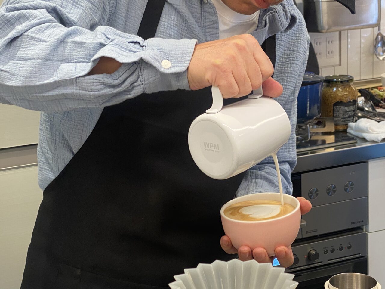 ラテにはきれいなハートが描かれ、苦味控えめで飲みやすい味でした。