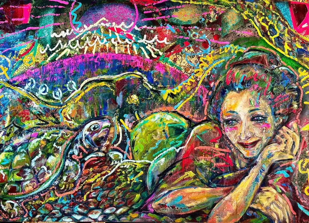 店内には、ご主人が描いたMARIちゃんの大きな絵も飾られています。