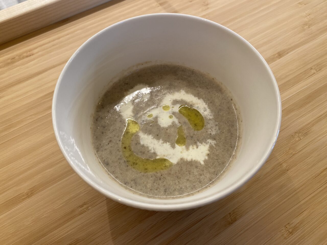 マッシュルームのポタージュは濃厚さと優しさを兼ね備えた味。ベーグルを“つけパン”しても美味しそうです♪