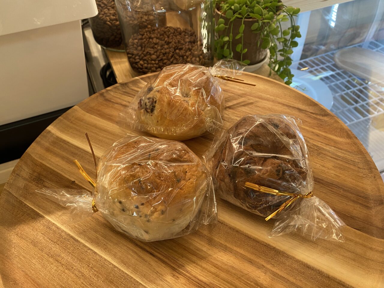 奥様の手づくりベーグルは1個350円でテイクアウト可能。店内ではドリンクとセットで800円になります。