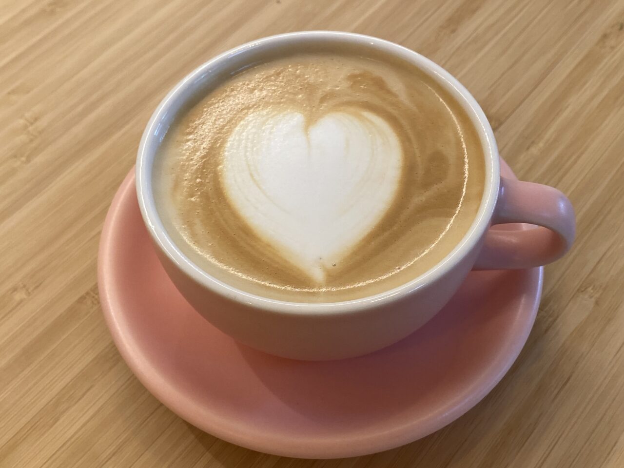 ラテにはきれいなハートが描かれ、苦味控えめで飲みやすい味でした。