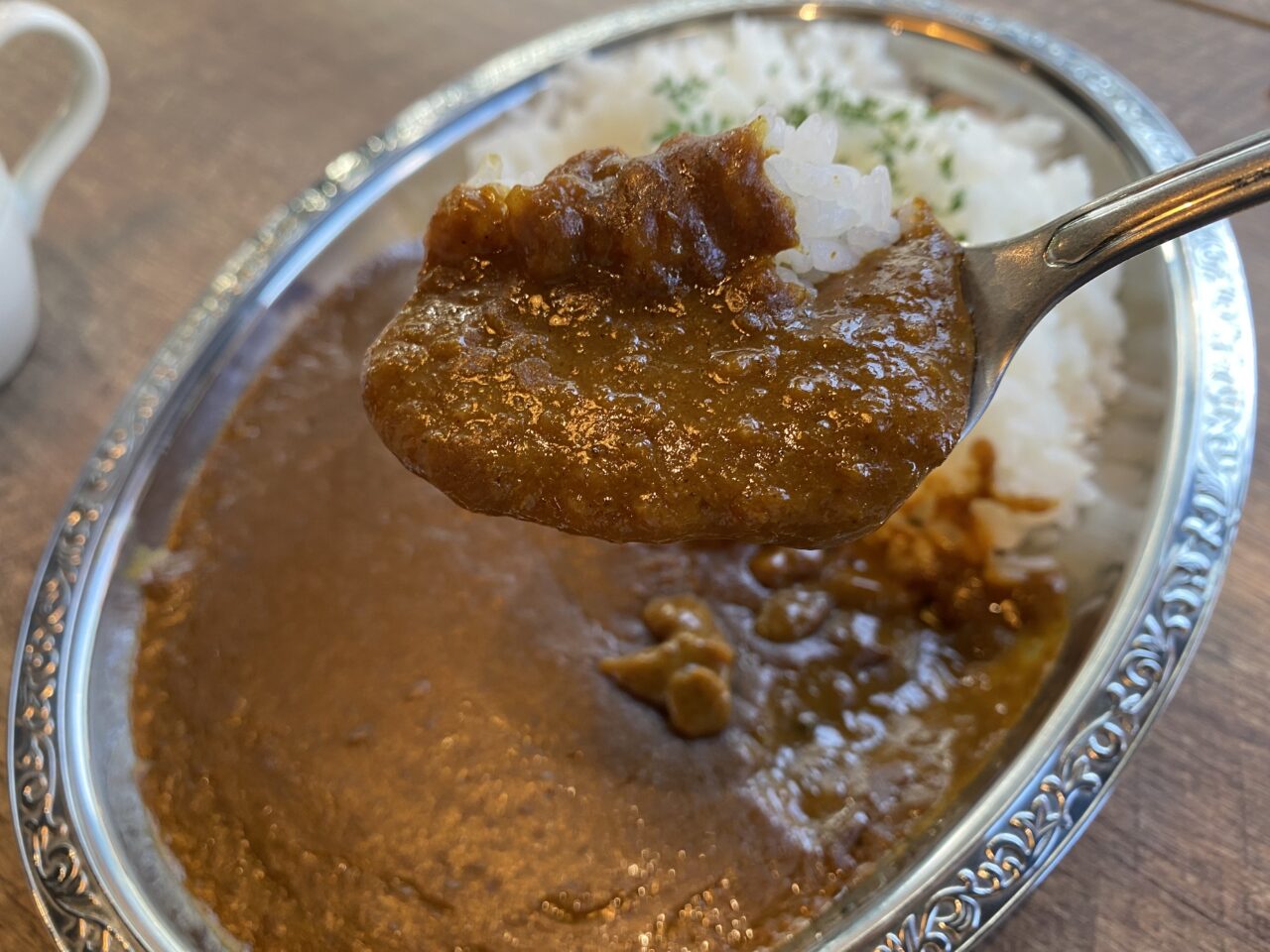 確かに甘みと深みのある辛さがクセになる味。あとからじわじわくる辛さと言いますか。大人なカレーが好きな方にとてもおすすめです。