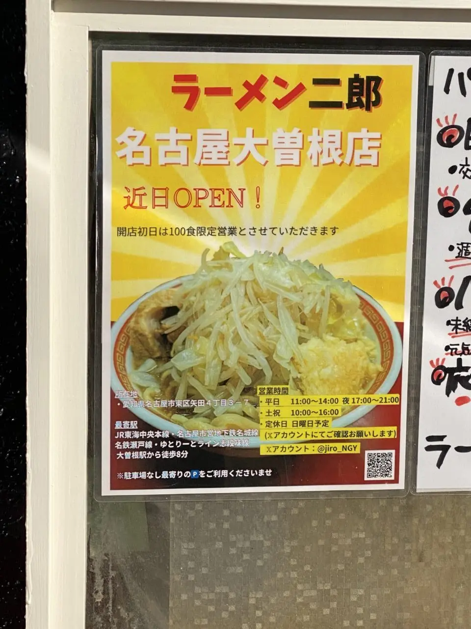 【名古屋市東区】続報!東海初直系「ラーメン二郎 名古屋大曽根店」のオープン日が判明!