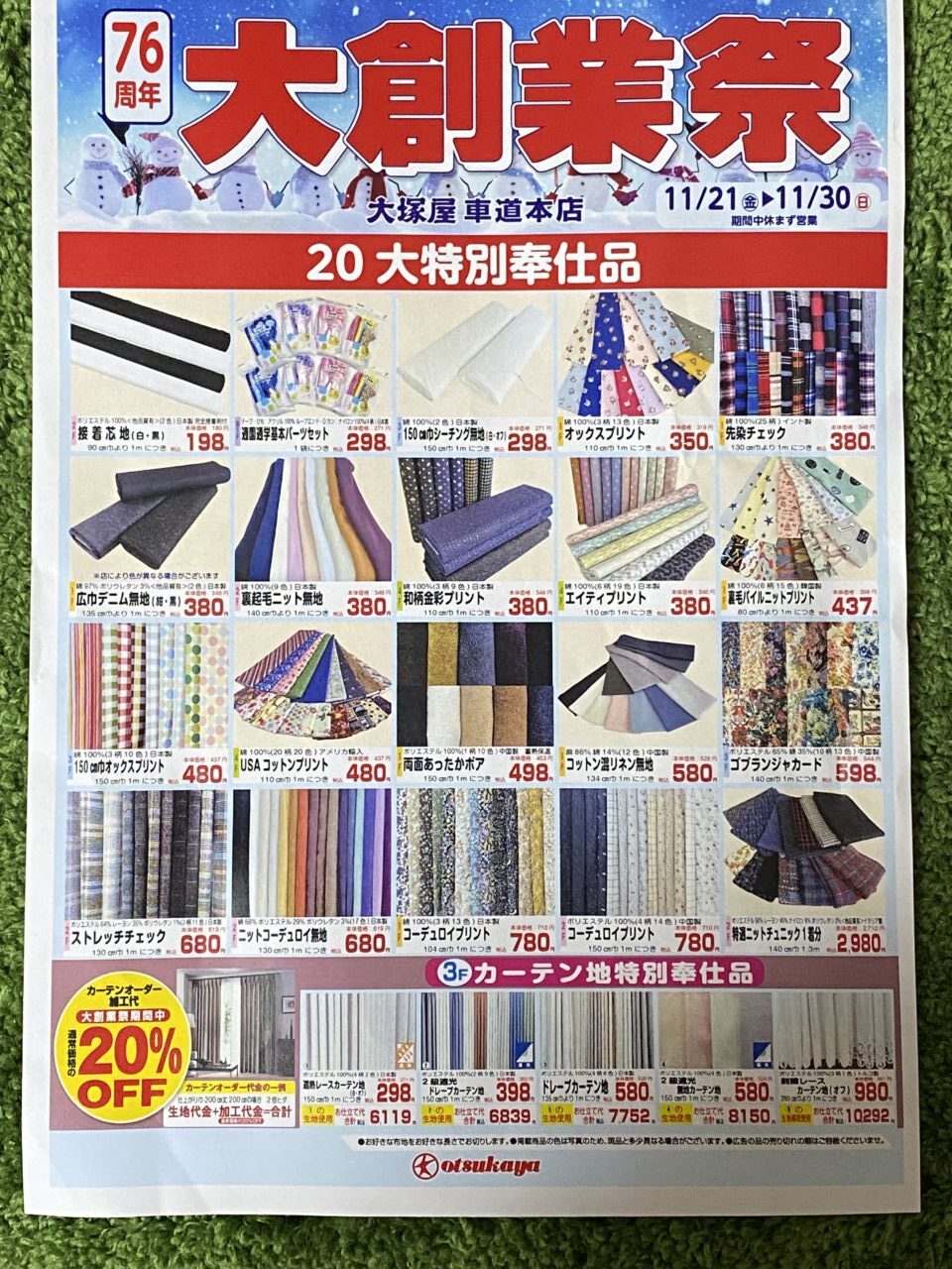 名古屋市東区車道にあるファブリック専門店「大塚屋」で、2025年11月21日(金)~30日(日)までの10日間、「76周年 大創業祭」が開催中です!