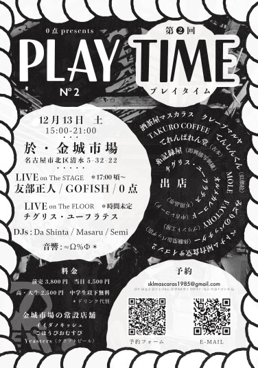 名古屋市北区清水にある「金城市場」で、2025年12月13日(土)に音楽イベント〈0点 presents “PLAYTIME No.2”〉が開催されます!